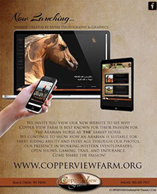 Ad layouts by Mpire Photography & Graphics have been featured in Arabian Horse Times, Arabian Horse World, The Arabian Sport Horse Magazine, Canadian Arabian Horse News, The Equiry, The Crabbet Horse Magazine, as well as regional and local publications, including show programs, newsletters, trade shows, and more.