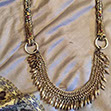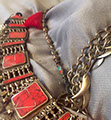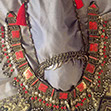 Coral with Gold and silver accent tones make up the chest piece. Authentic ME styling.