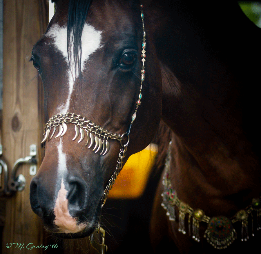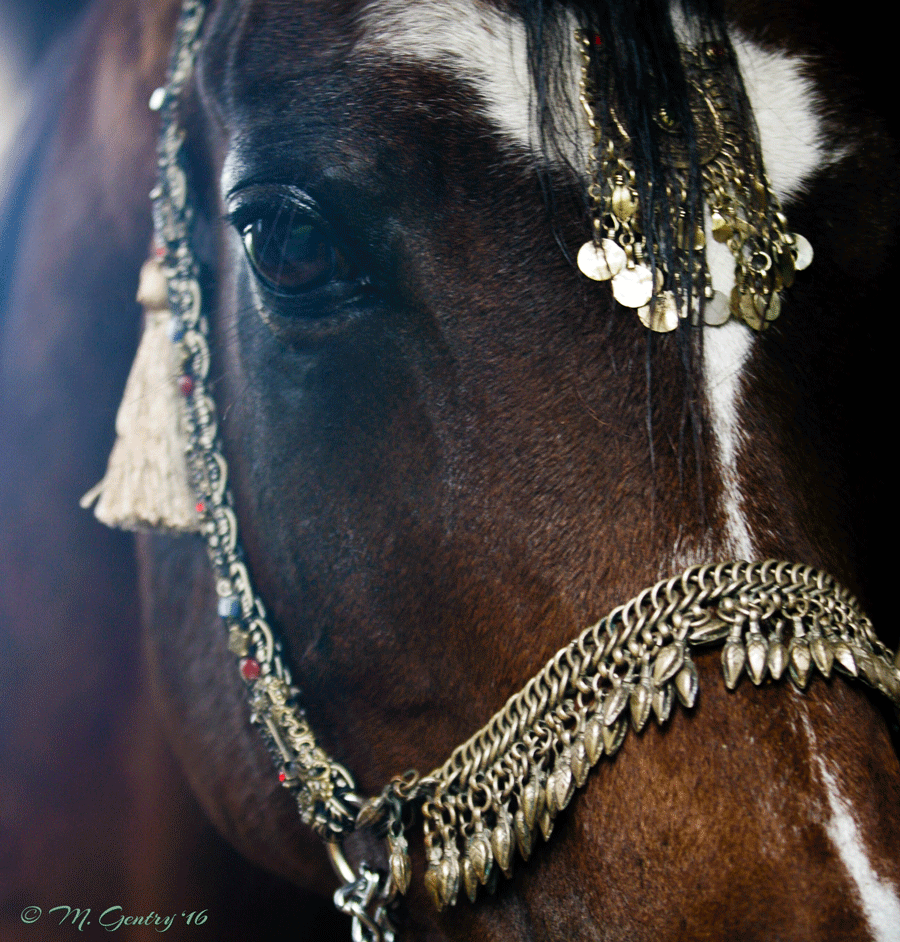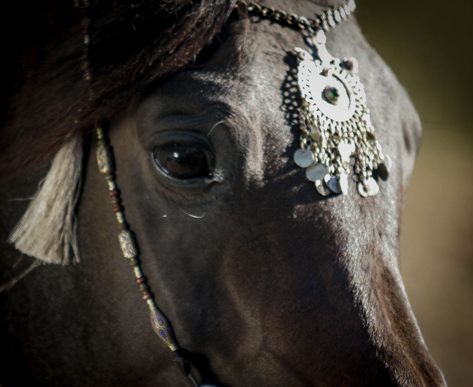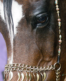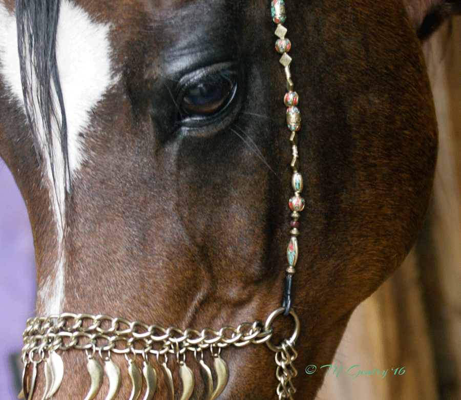 The cheek and crown piece have been stitched with heavy duty threading on welded brass 1"rings. The forehead piece is also a genuine imported piece from ME nomadic tribes to lend your presentation an authentic and unique Arabian look. Head piece is sold separately.
